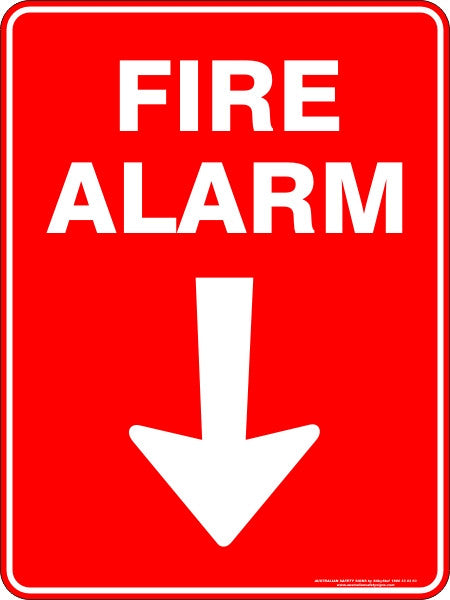 This Fire FIRE ALARM ARROW DOWN Sign is available in a variety of sizes and materials.