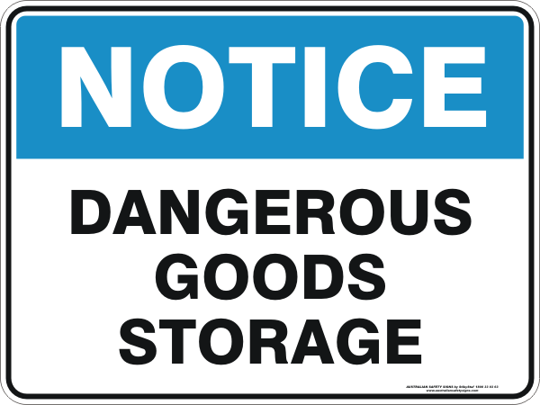 This Notice DANGEROUS GOODS STORAGE Sign is available in a variety of sizes and materials.