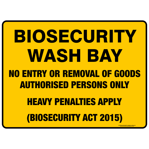 This BIOSECURITY WASH BAY Sign is available in a variety of sizes and materials.
