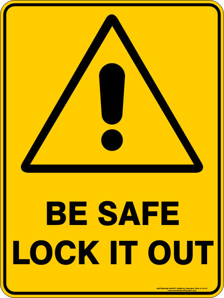 This Warning BE SAFE LOCK IT OUT Sign is available in a variety of sizes and materials.